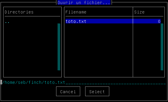 Un explorateur de fichier s'affiche, vous permettant de sélectionner le fichier à envoyer. Une fois choisi, valider avec ↵ Entrée.