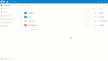 Dans votre espace Nextcloud vous verrez 3 nouveaux boutons (couper, copier, coller) lorsque vous cocherez des fichiers/dossiers en guise de sélection.
