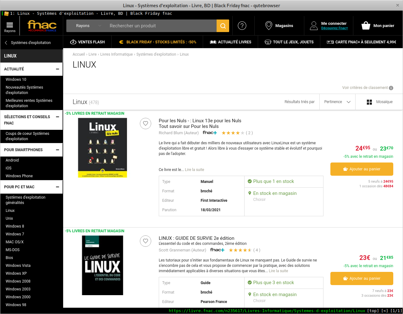 Qutebrowser est un navigateur axé sur le clavier avec une interface graphique minimale.