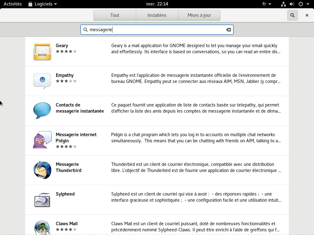 Logiciels (ou gnome-software) permet l'installation facile de nouveaux logiciels via une interface graphique.