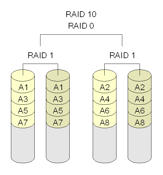 Une forme de RAID qui stocke 2 copies complètes des données et répartit également chaque copie sur plusieurs volumes d'où un gain de performance. Il faut au minimum 4 volumes pour pouvoir utiliser le RAID-10.