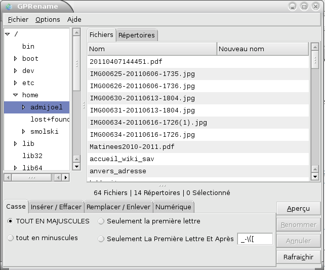En cliquant sur l'applet gprename, nous ouvrons le répertoire /home/votre_user.