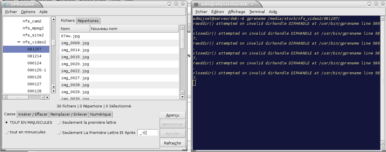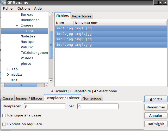 En ouvrant gprename dans un terminal, nous pouvons ouvrir directement dans le répertoire que nous désirons. Tapez :