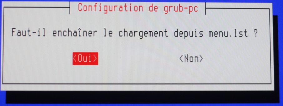 Le téléchargement terminé, il vous est demandé si vous voulez “modifier” le fichier /boot/grub/menu.lst pour permettre le chaînage qui va suivre.