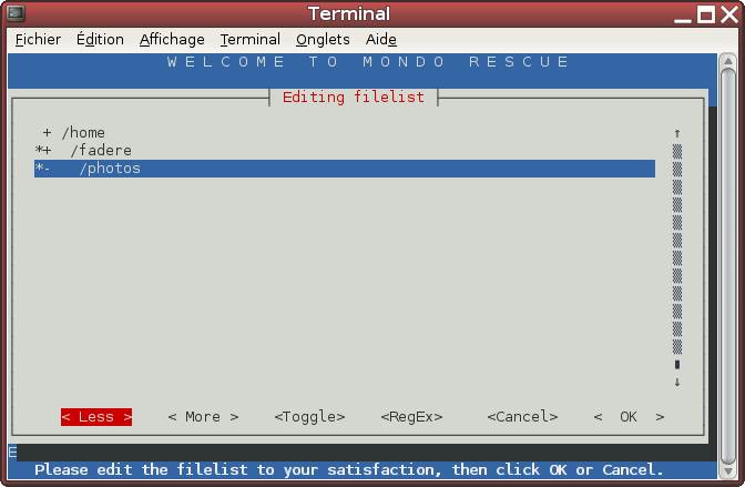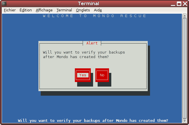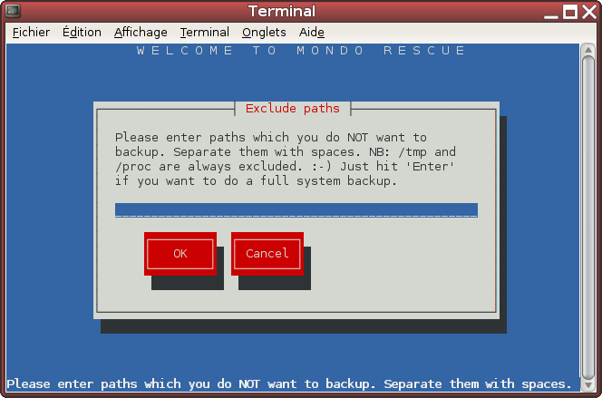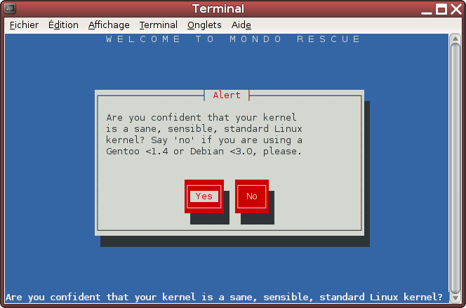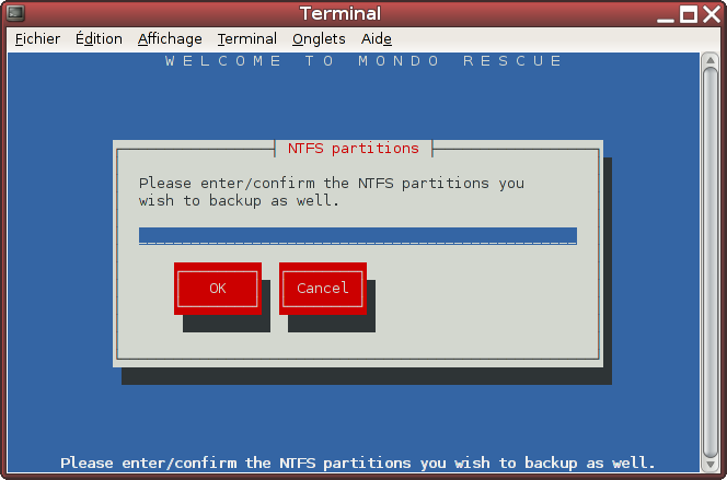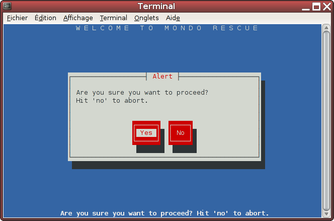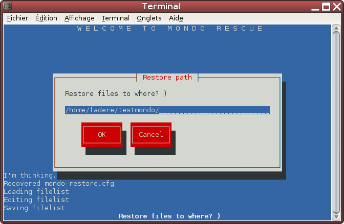 Pour restaurer votre système, il suffit de redémarrer à partir du CD ou de la disquette créé et Mondorescue restaure automatiquement votre système.