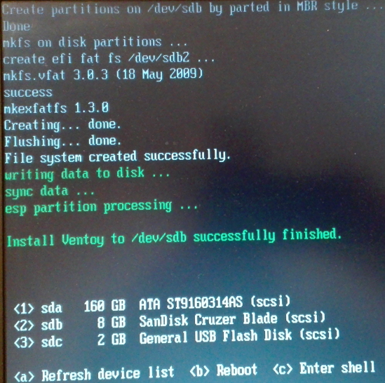 Install Ventoy to /dev/sdb successfully finished