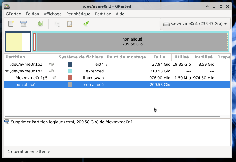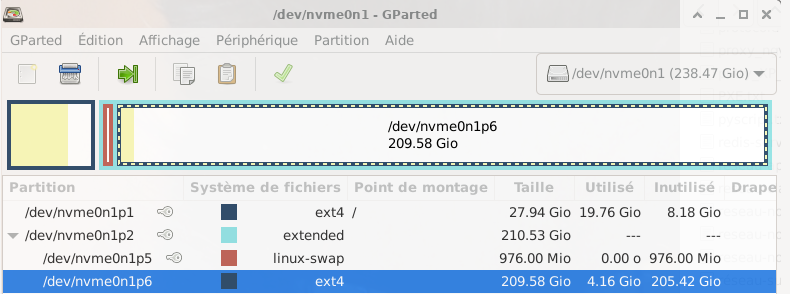 Maintenant il faut supprimer la partition nvme0n1p6