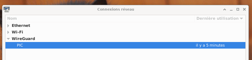 vous voyez maintenant que votre applet network comporte un petit cadenas, qui vous dit que le vpn est installé et actif