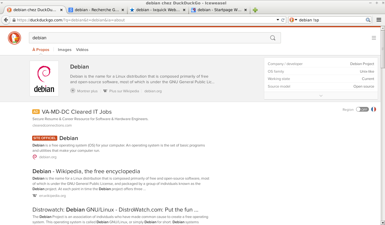 | Tous les résultats | debian region:none | Affiche tous les résultats sans prendre en compte les paramètres de région |