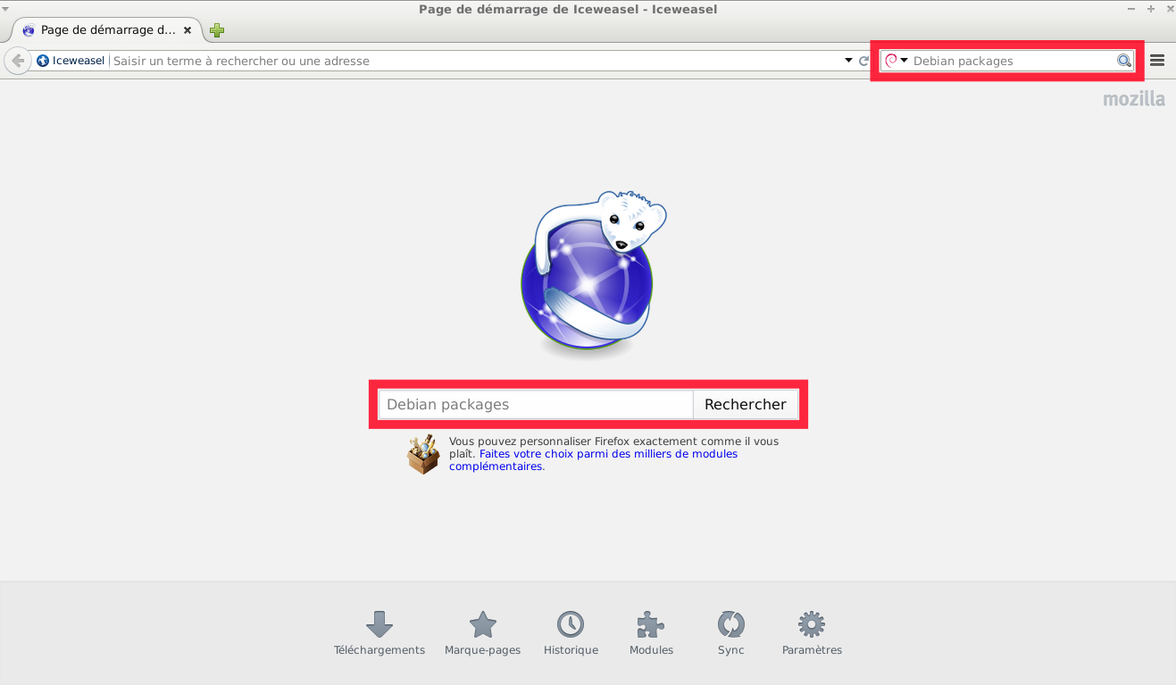 Au démarrage de Iceweasel : Afficher ma page d'accueilPage d'accueil : mapagedaccueil.com