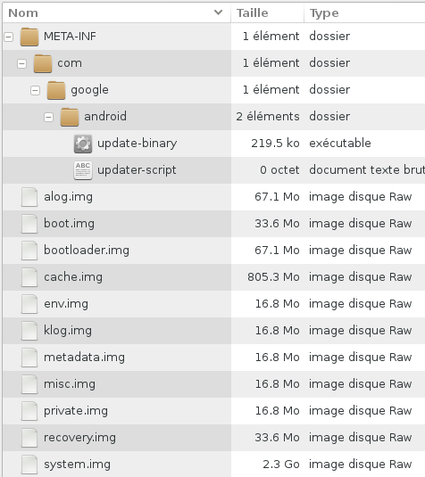 La suite de ce wiki ce passe sur l'ordinateur. Nous allons créer l'archive au format zip qui contiendra notre dump. Dans le dossier “dump_android” qui contient (normalement) toutes les partitions que nous venons d'extraire de notre appareil Android, nous allons devoir rajouter un dossier “spécial” qui doit s’appeler obligatoirement “META-INF”. Pour faire bref ce dossier contiendra toutes des informations importantes comme par exemple le script d'installation (updater-script) de notre futur archive.
