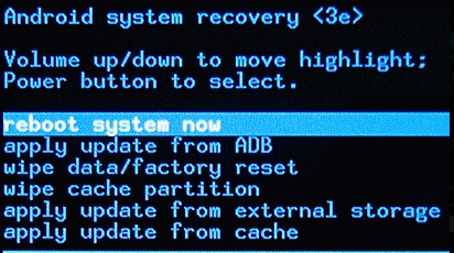 Nous voici sur le mode Recovery, pour information il existe une multitude de Recovery mais en principe ils tous très ressemblant. Voici un exemple de Recovery: