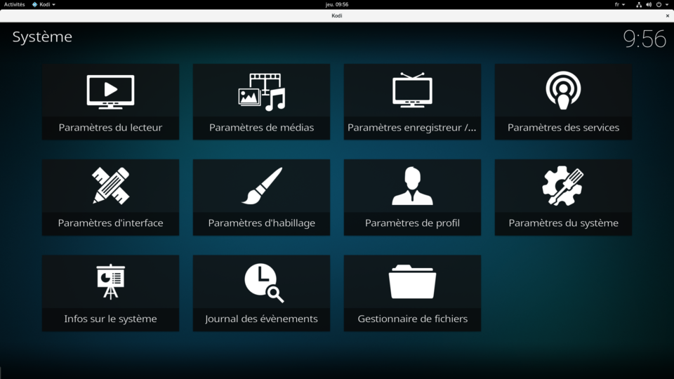 Ou bien nous ouvrons kodi pour gnome via : Activités du menu.