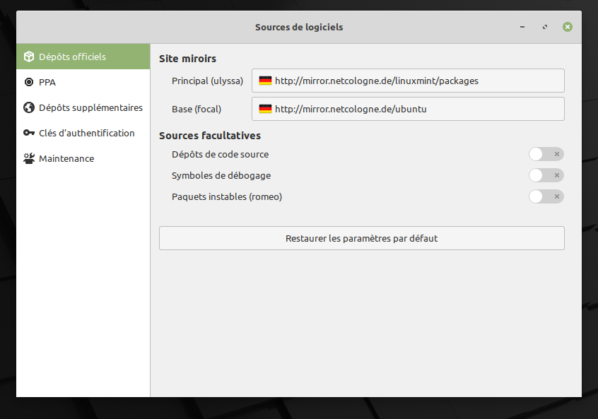 Il faudrait commencer par ça, l’équipe derrière Linux Mint est forcément mieux renseignée que nous sur les meilleurs dépôts à utiliser.