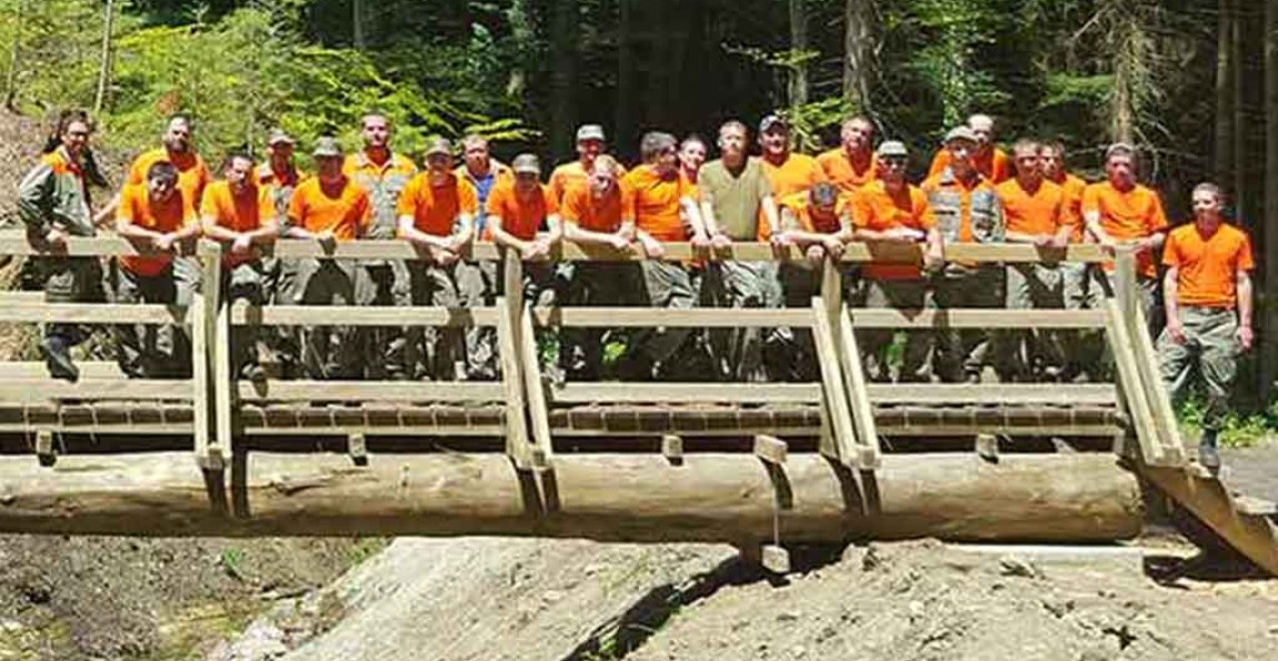 40 astreints ont œuvré pendant neuf jours à la construction d’une passerelle surplombant la rivière de la Mortigue, à proximité des Grottes du Pendant à Mézières.