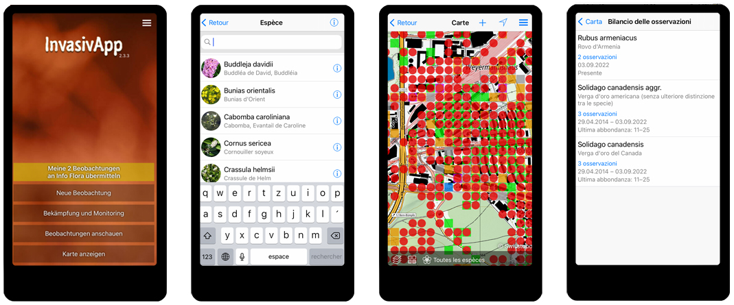 InvasivApp est l'application smartphone pour saisir des observations de néophytes invasives, ainsi que pour annoncer des luttes et suivre leur efficacité. Rapide et permettant la visualisation sur carte, cette application mobile répond aussi bien aux besoins des professionnels que des amateurs désireux de lutter contre l’avancée des plantes envahissantes.